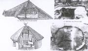 居住区内居住建筑有平面圆形和方形两种。就建筑风格及构造方式而言,又可分为半穴居式和地面木架建筑式。