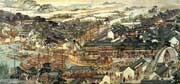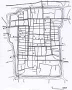 苏州现在还保存着绍定二年该平江图碑,这是我国最早的城市地图,相当准确地表现了南宋时苏州城的平面布置:城内有主要河道组成通向城门的干河,由此分出许多支河,通向各居住街巷,傍河两岸是街道市肆与住房,环绕城墙内外各有一道城濠,既是交通环道,又是双层护城河。全城河道形成一个交通网和排水系统。城内中部偏南为府治和平江军所在的子城,城北部分是街市和居民区,其中以子城西北乐桥一带最为热闹。