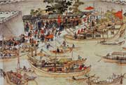 唐时,由于城内河道密布,桥也特别多,在白居易和刘禹锡作苏州刺史时,苏州桥数在390座和370座之间。城门则有水陆各8座,每面各有2座,至今城西南角盘门尚留水、陆城门遗址。白居易诗:“远近高低寺间出,东西南北桥相望。水道脉分棹鳞次,里闾棋布城册方。”“处处楼前飘吹管,家家门外泊舟舫。” 描述了唐时这座水乡城市的风貌。南宋时苏州称平江,是经济上和军事上都很重要的城市。