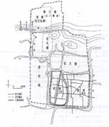 扬州的居住区,由许多庭堂式的民居组成,多成长条形。住宅内部的布置因大门的朝向不同而各异,旧城区道路仍以十字形干道为主,形成方格网道路系统。新城区道路系统则成不规则形。