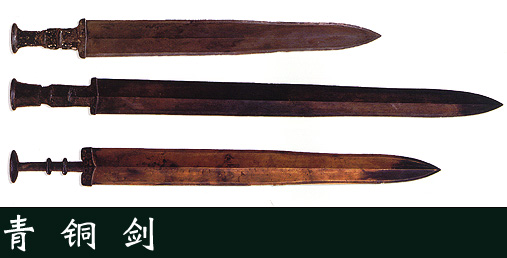 由于战争的需要,青铜被大量作来制造武器。楚国出土最多的青铜后期器有剑、戈、戟、矛等。剑在各类青铜兵器中数量最大,据不完全统计,在已发掘的3000余座楚墓中共出600多把剑(图4)。