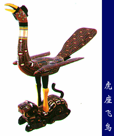 楚国漆器的胎体中占绝大多数的是木胎。楚国漆木胎的制法主要有斫木成、卷木成型、镟木成型以及雕刻、拼接等。所谓所木成型,就是斧砍刀削而成型,漆耳杯(见图6)多数是采用整木块挖内成型,然后削其外形。卷木成型,是将木板卷起来之后做成器物的胎体,如漆奁、漆卮等的器壁一般都是这样制成的。一些胎体较厚的圆形器物、如圆盒(图7)、樽等采用镟木成型的方法,其内空部分采用挖制,而器表采用漩制。在楚国本胎漆器胎体的制作中,最富于艺术特色的是那些采用透雕、圆雕及浮雕工艺加工成型或再进行拼合的器物。如虎座飞鸟(图8)、彩绘木雕座屏等。