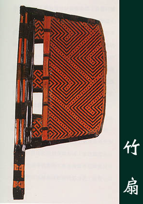 楚国的竹胎漆器以竹编织物最为精致。楚国的竹编织物在许多楚墓中都有出土、是楚人的日常生活用品之一。如江陵马山1号楚墓出土竹器27件,其中髹漆竹器有竹扇(见图9)、小型竹笥、圆竹筒等。该墓出土的竹扇制作精细、保存完好,出上时色泽如新,扇面成梯形,经蔑红色,纬蔑黑色,用三经一纬的细蔑编织而成。