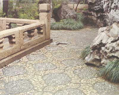 石栏杆、铺地和山石