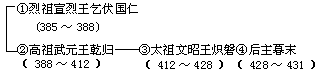 西秦 十六国之一。陇西鲜卑族(一说属赀虏)酋长乞伏国仁所建。都苑川(今甘肃榆中东北)。盛时有今甘肃西南部和青海一部。历四主,共四十七年。 鲜卑乞伏氏在汉魏时自漠北南出大阴山,迁往陇西并定居于此。前秦主苻坚在位时,乞伏鲜卑酋长、国仁父乞伏司繁被命为镇西将军,镇勇士川(今甘肃榆中东北)。司繁死,国仁代镇。肥水之战,苻坚败亡,国仁招集 世系表