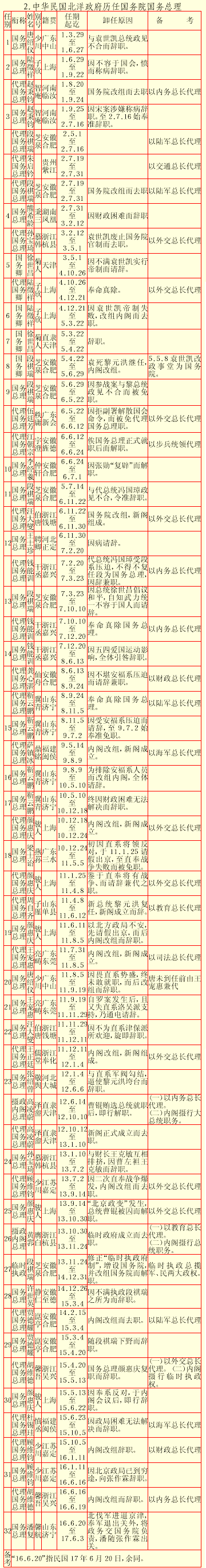 2.中华民国北洋政府历任国务院国务总理